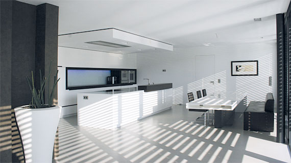 Eine Küche mit integriertem Abstellraum sowie Kochblock komplett in LG Solid Surface Werkstoff HI-MACS®. Für professionelle Funktionalität kombiniert mit Designanspruch.
